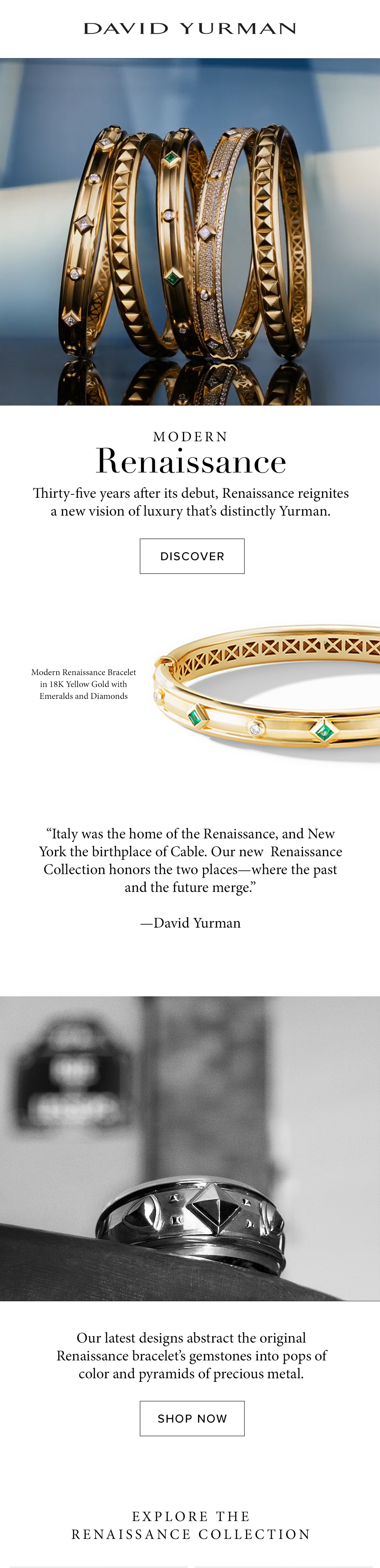 During my time at David Yurman, I was responsible for email campaigns, utilizing imagery and typography to craft visually stunning layouts for major campaigns. As a member of the digital team, I collaborated closely with copywriters, marketing team, print team, and videography.